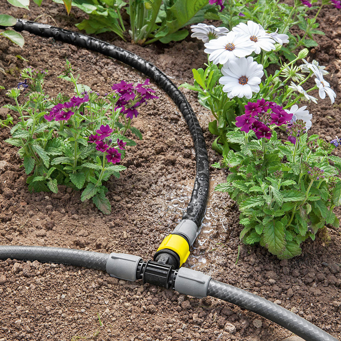 Το 25 μέτρων λάστιχο διαποτισμού είναι κομμάτι του Kärcher Rain System™. Το νερό στάζει από το λάστιχο ομοιόμορφα σε ολόκληρο το μήκος του λάστιχου όπου ακριβώς χρειάζεται. Αυτό εξασφαλίζει ιδιαίτερα αποδοτικό και αποτελεσματικό πότισμα των φυτών και των θάμνων. Το λάστιχο μπορεί με τη βοήθεια των συνδέσμων Ι και Τ να κοντύνει ή να επεκταθεί μέχρι 50 μέτρα. Η ποσότητα του νερού στο λάστιχο διαποτισμού μπορεί να προσαρμοστεί ανάλογα με τις ανάγκες του κήπου σας. Το διπλής στρώσης λάστιχο δεν περιέχει φθαλικές ουσίες, κάδμιο, βάριο και μόλυβδο οπότε είναι ακίνδυνο για την υγεία σας. Ιδανικά το λάστιχο δέχεται πίεση μέχρι 2 bar. η εγκατάσταση του λάστιχου είναι ιδιαίτερα εύκολη και δεν χρειάζεται εργαλεία. Το Kärcher Rain System™ συνδυάζει τα πλεονεκτήματα της άρδευσης σταγόνας και του συμβατικού ποτίσματος ενώ λειτουργεί με μέγιστη πίεση 4 bar. Μπορεί να προσαρμοστεί σχεδόν σε κάθε είδος κήπου.
